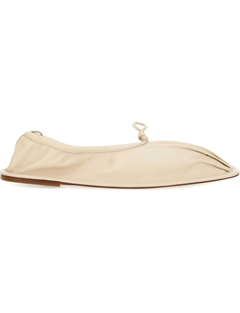 Square Toe Soft Leather Puntera Ballet Flats With Pleated De