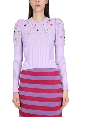 Ribbed Crew-Neck Sweater With Lurex Embroideries
