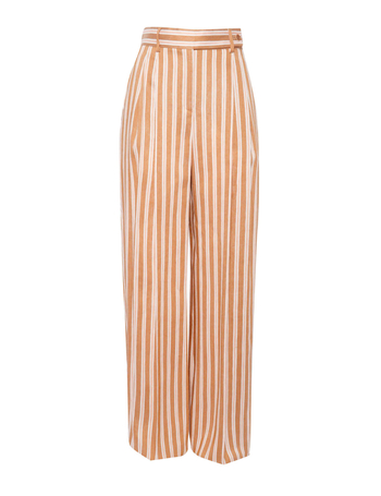 Single-Pleated Palazzo Pants With Side Satin Bands