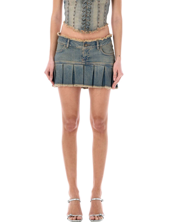 Denim Pleated Mini Skirt