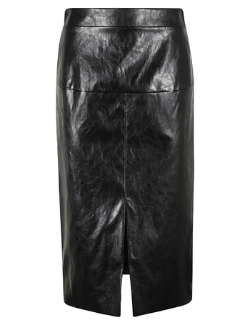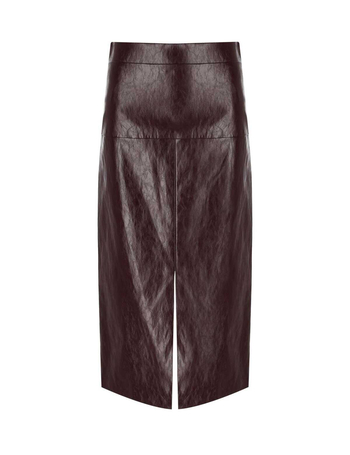 Burgundy Leather Effect Midi Skirt