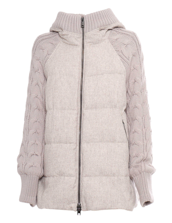 Down Jacket With Braided Knitted Sleeves