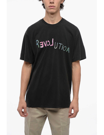 Solid Color Revolution Crewneck T-Shirt With Frontal Print