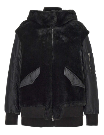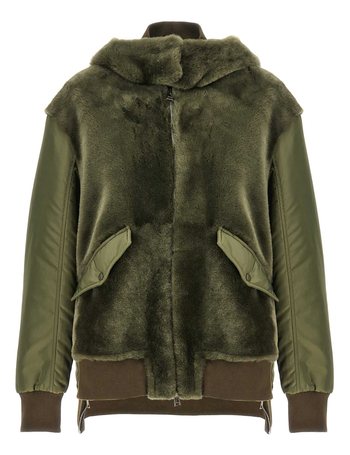'Merino Straight-Nylon' Hooded Bomber Jacket,