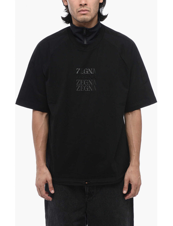 Logoed T-Shirt With Tech Fabbric Double Collar