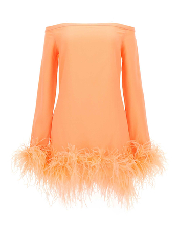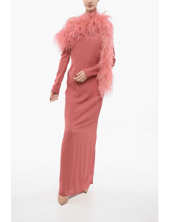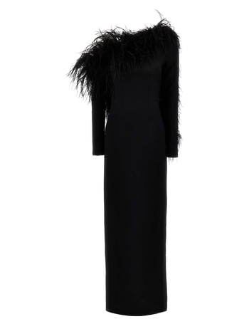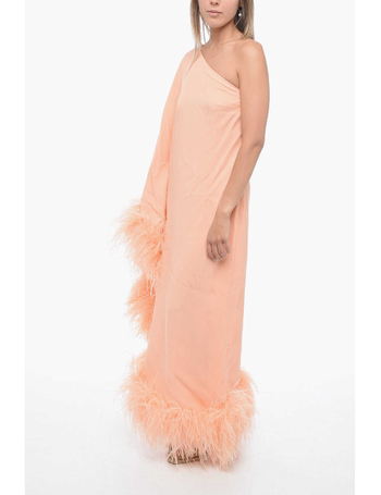 Crepe Ubud One-Shoulder Dress With Ostrich Feathers