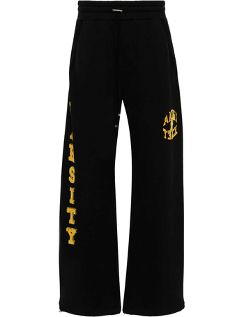 Drawstringed Ankle Varsity Sweatpants With Flocked Prints