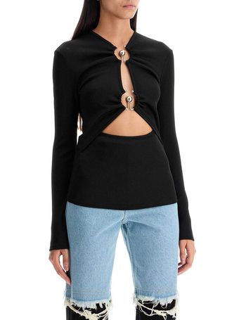 Solid Color Ribbed Off-Shoulder Top With Cut-Out Detail