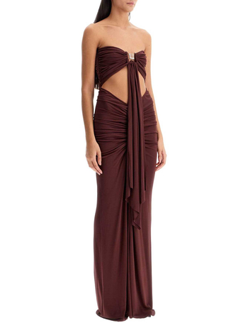 Long Black Viscose Maxi Dress With Copper And Stone Decoration