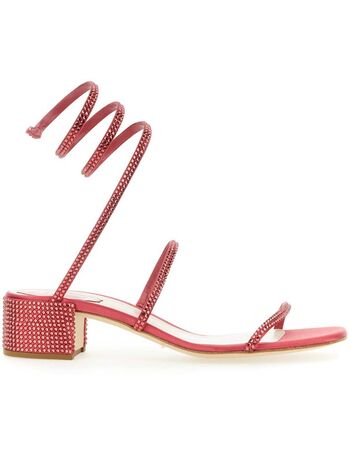 Rhinestone-Embellished Mid-Heel Sandals