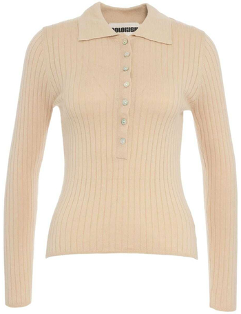 Ribbed Long Sleeve Polo Shirt 'Adela'