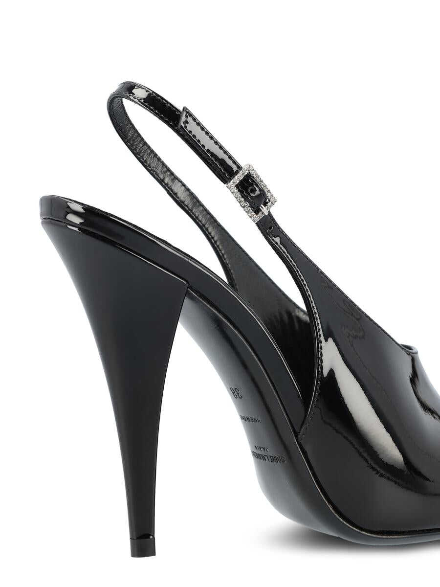 - Upper: 100% calfskin, 5% brass, 5% crystal - Color: black - Leather sole - High heel: 11 cm - Other details: adjustable back strap with rhinestone-covered buckle - Made in Italy - Box included - Item number: 7553681TV001000 - Fits true to size as shown - European sizes -.