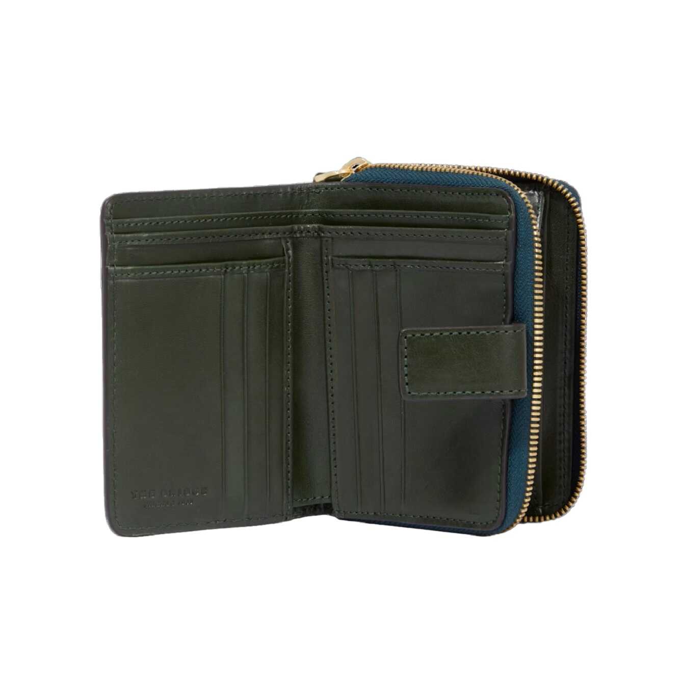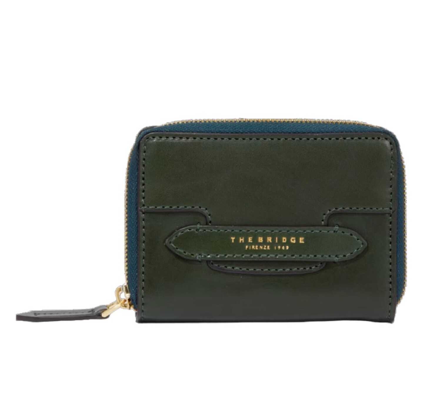 The Bridge leather wallet is an accessory with a classic and elegant style, perfect for storing credit cards, banknotes and coins. The perfect balance between elegance and practicality. Material: LEATHER Color: Green Material Code: 01 Measurements: 10x13x3 cm Line: LUCREZIA Style: Classic Closure: with zip for the coin purse and button for documents. Cleaning: Use a special conditioner to keep the leather shiny and soft.