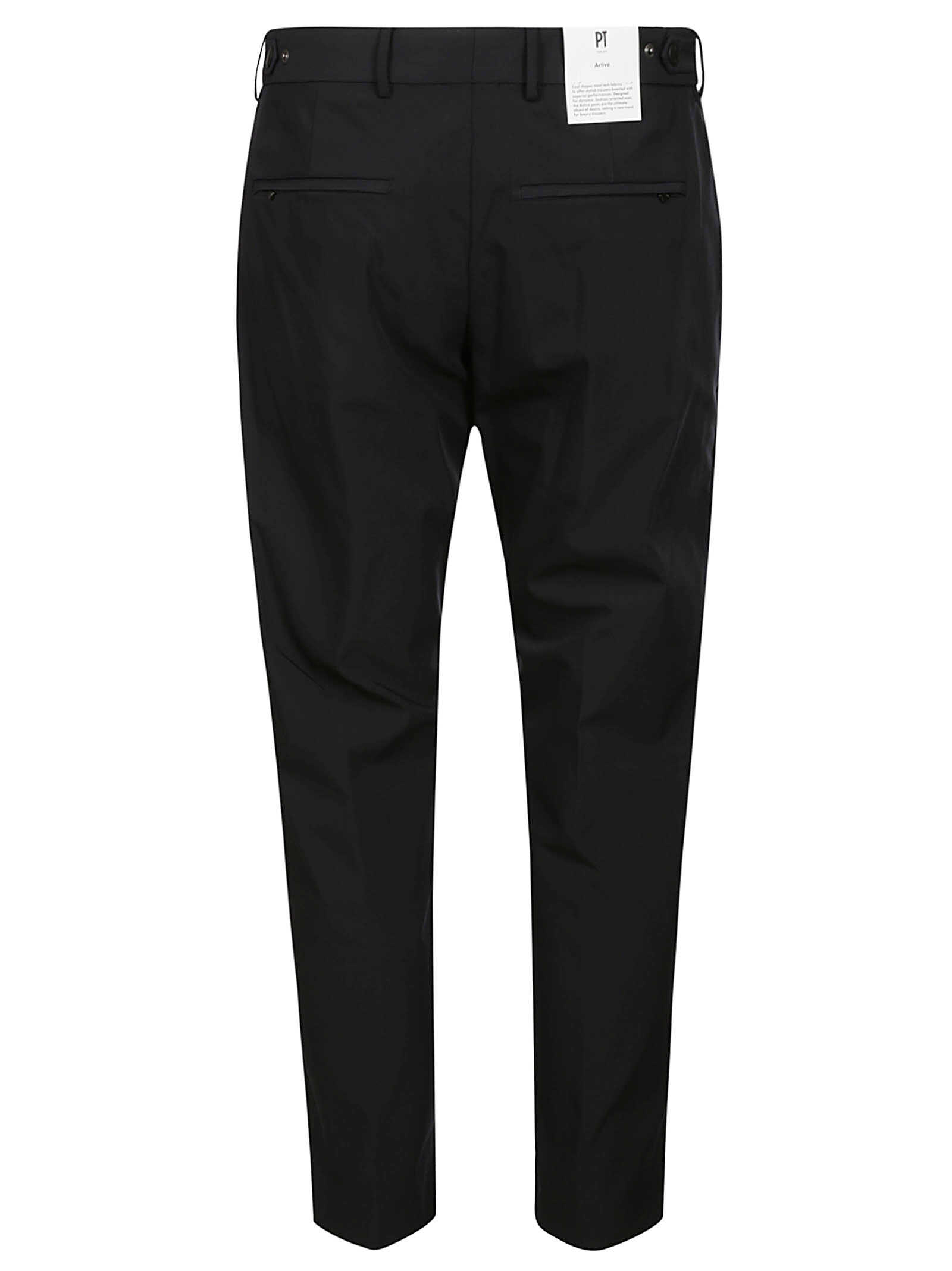 PT TORINO twill biotex stretch trousers, a comfortable and breathable fabric with a sophisticated and technical appearance at the same time. The carrot-style fit and front and back zip pockets define an active-inspired aesthetic perfect for elevating leisure time. In black variation to add a sophisticated touch to off-duty looks.