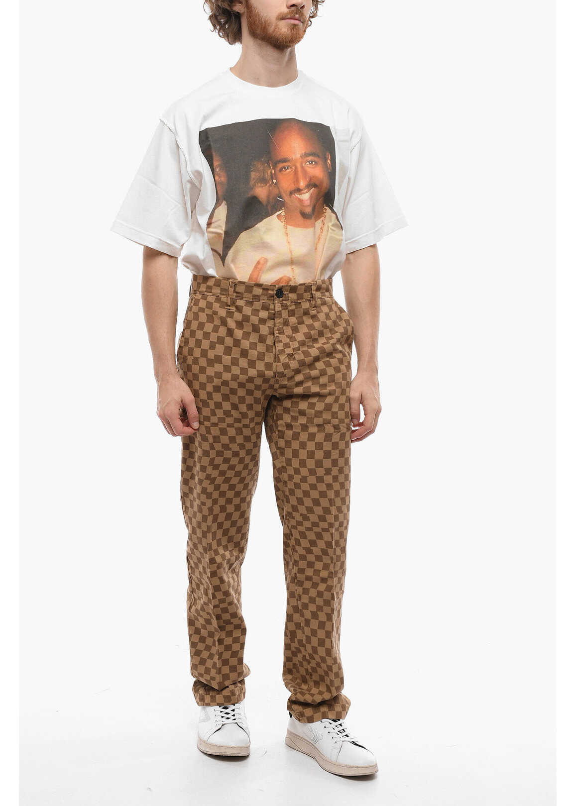 Belt loops Checked design 4 pockets Zip closure Buttons Front closure Normal waisted Flat front Beige Made in Italy Autumn-Winter Materials: 100%CO Product code: P558730 Model is wearing size 32 Model measurements Height: 178 cm Chest: 100 cm Waist: 73 cm Hips: 94 cm