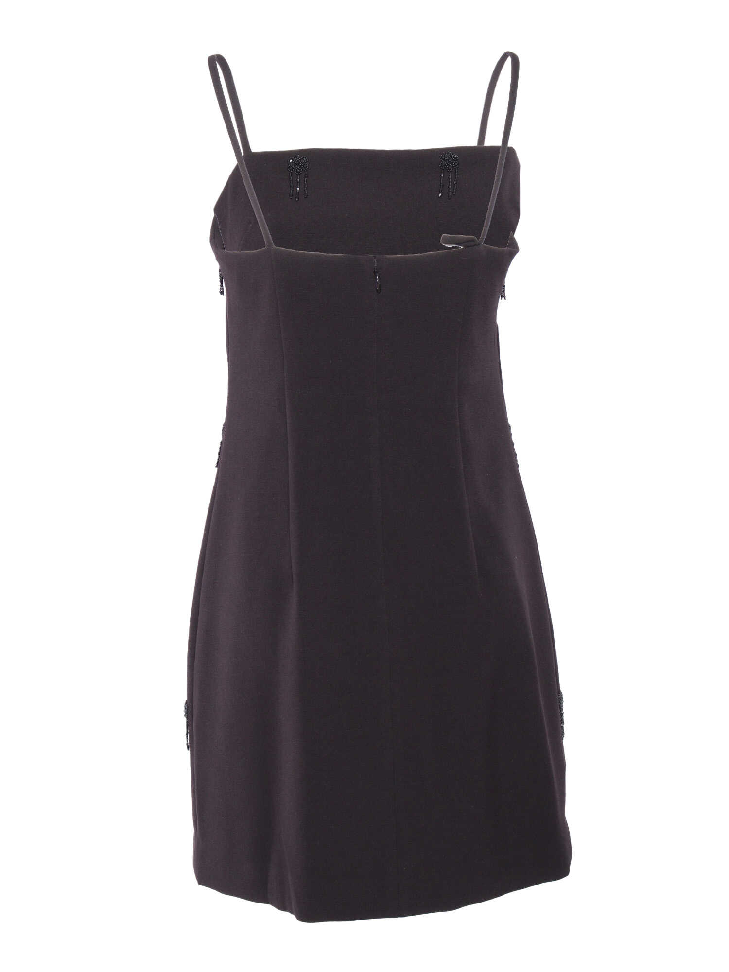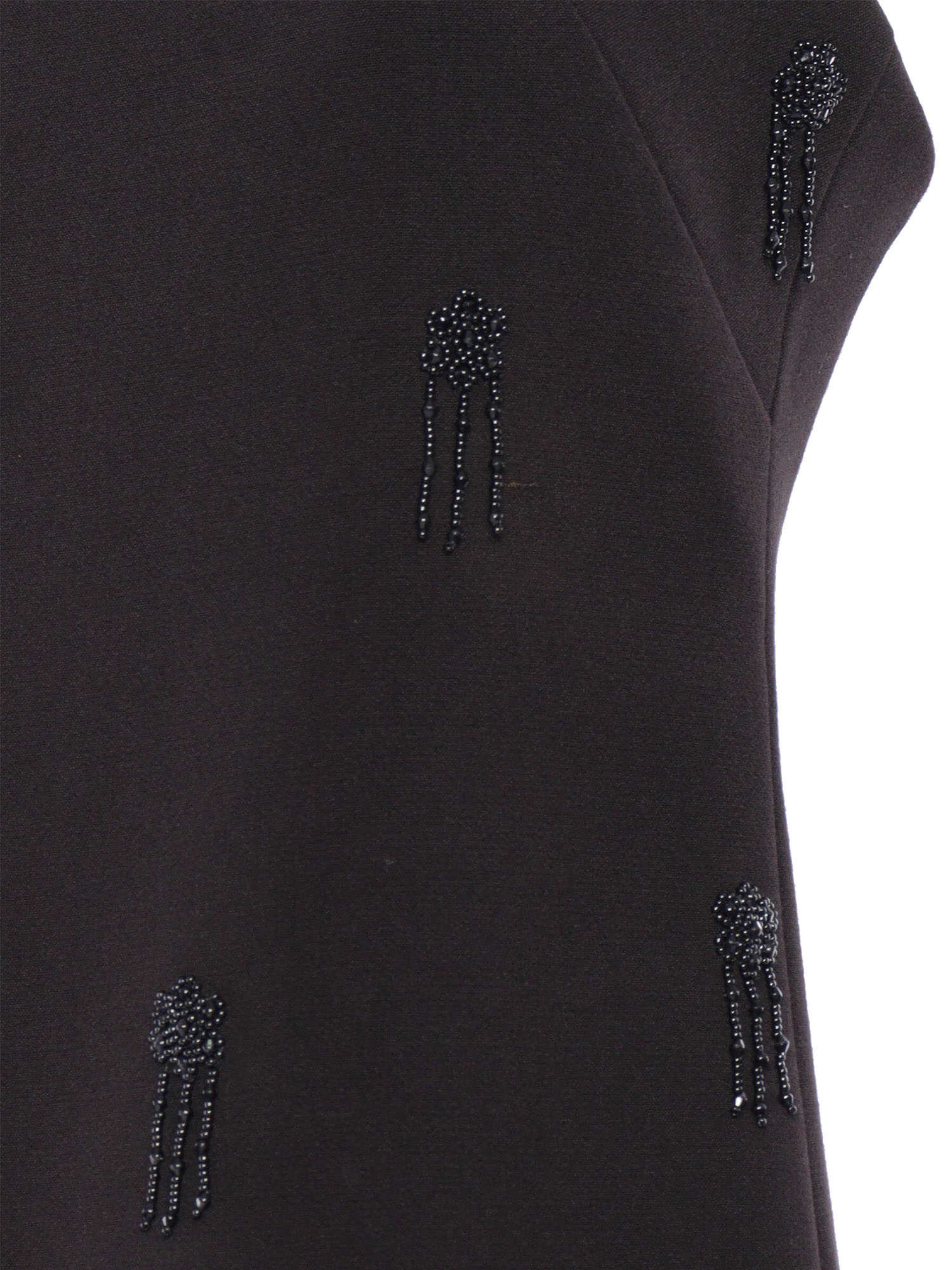 Stretch viscose blend dress, thin straps, beaded appliques, bare shoulders, hidden zip fastening on the back