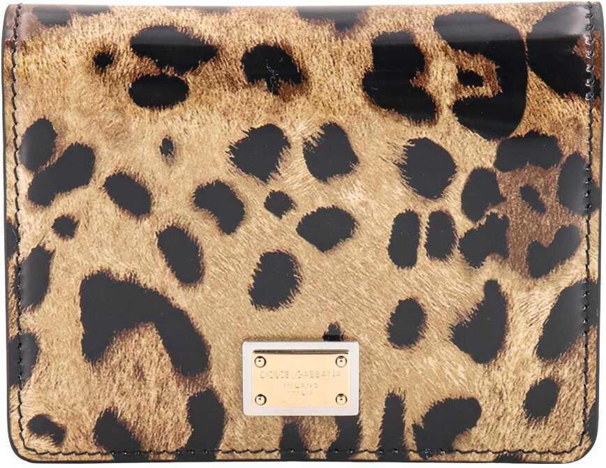 Shiny leather wallet with animalier print and logo patch