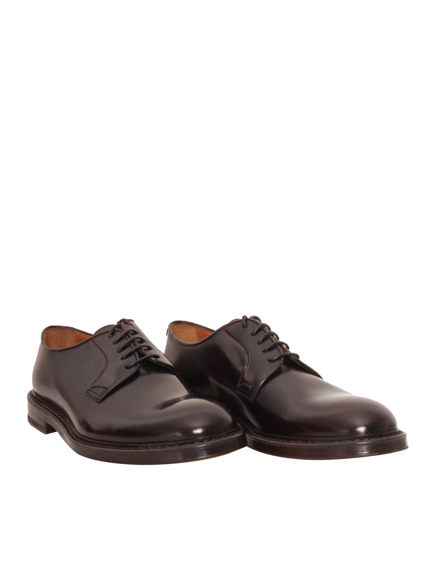 Shiny leather derby shoes, laced up, leather and rubber sole