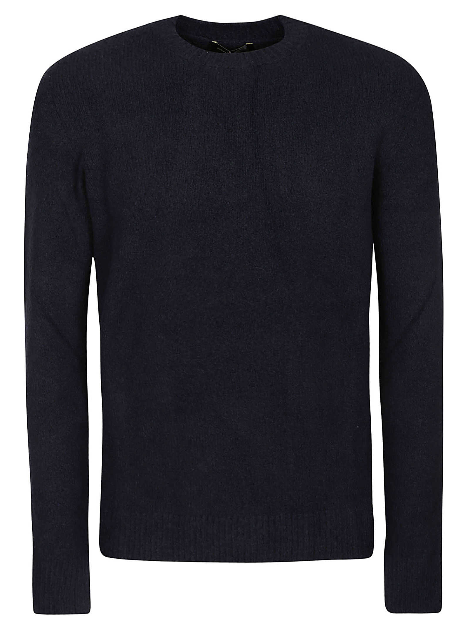 ROBERTO COLLINA blue crew neck sweater, with ribbed collar, hem and cuffs, regular fit. Composition 80% cotton 16% polyamide 4% elastane.