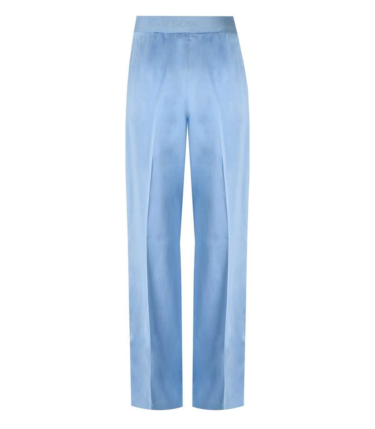 The Ciara trousers by Stine Goya are made of blue satin-effect viscose, featuring an elasticated waist with logo detail, front pleats and a hidden side zip closure. Straight and wide leg.