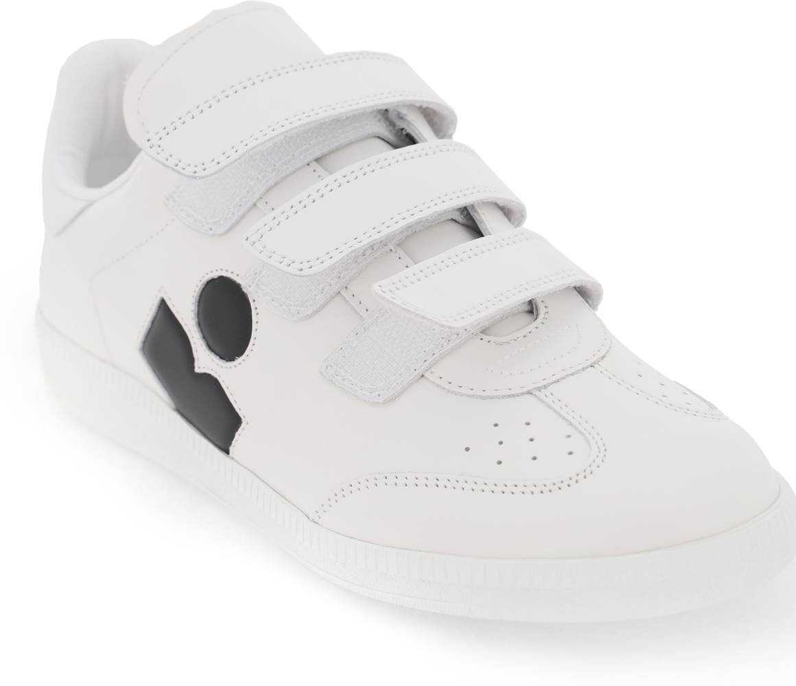 Isabel Marant Beth leather sneakers featuring contrasting logo on the side and lettering logo print on the heel-tab. Front velcro closure, leather and fabric interior with removable leather insole, rubber sole.