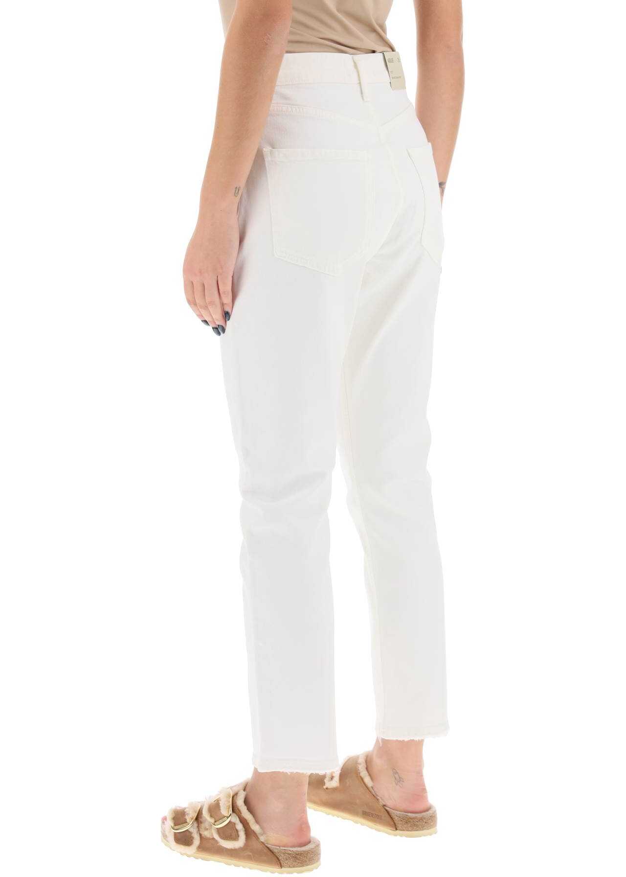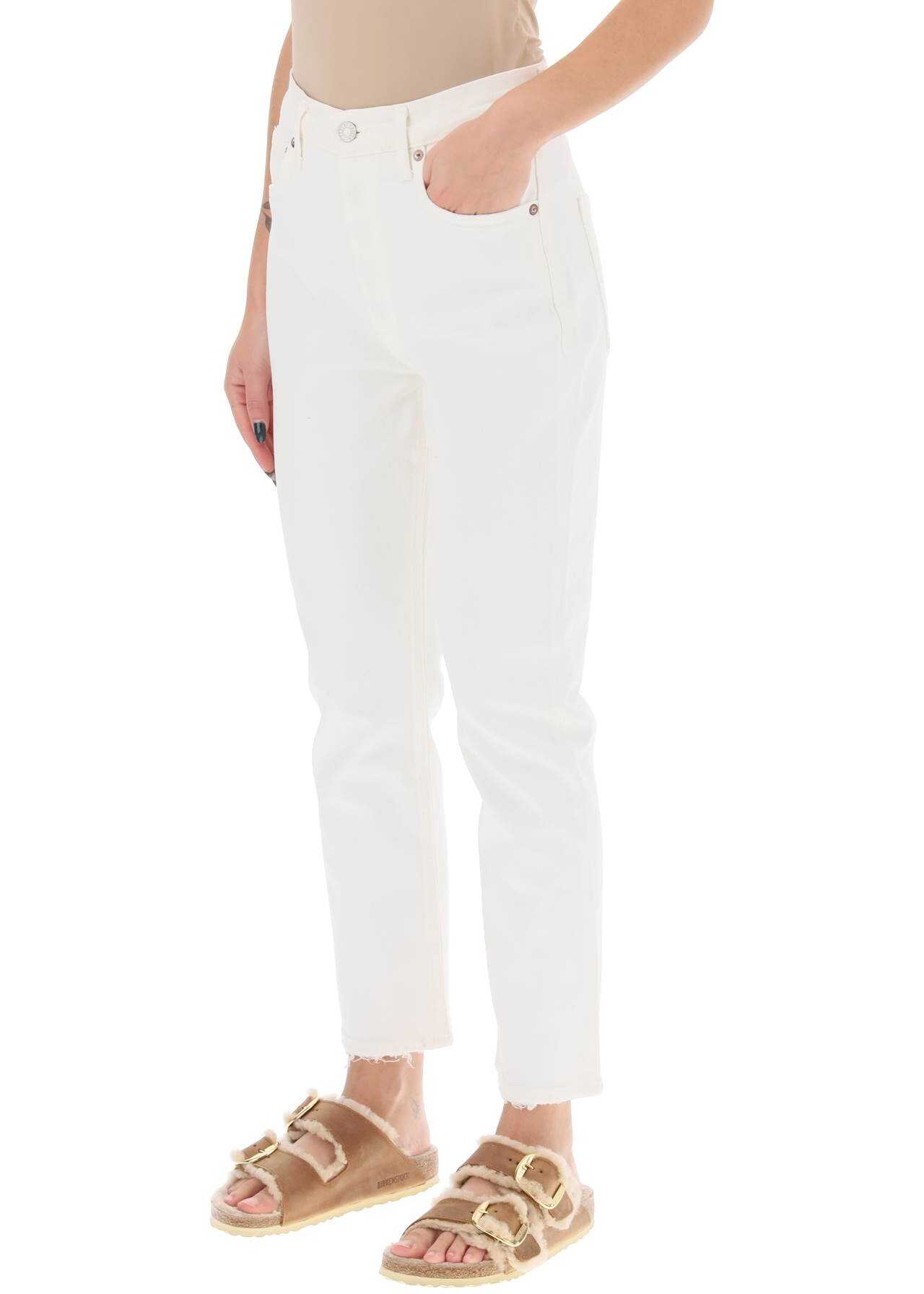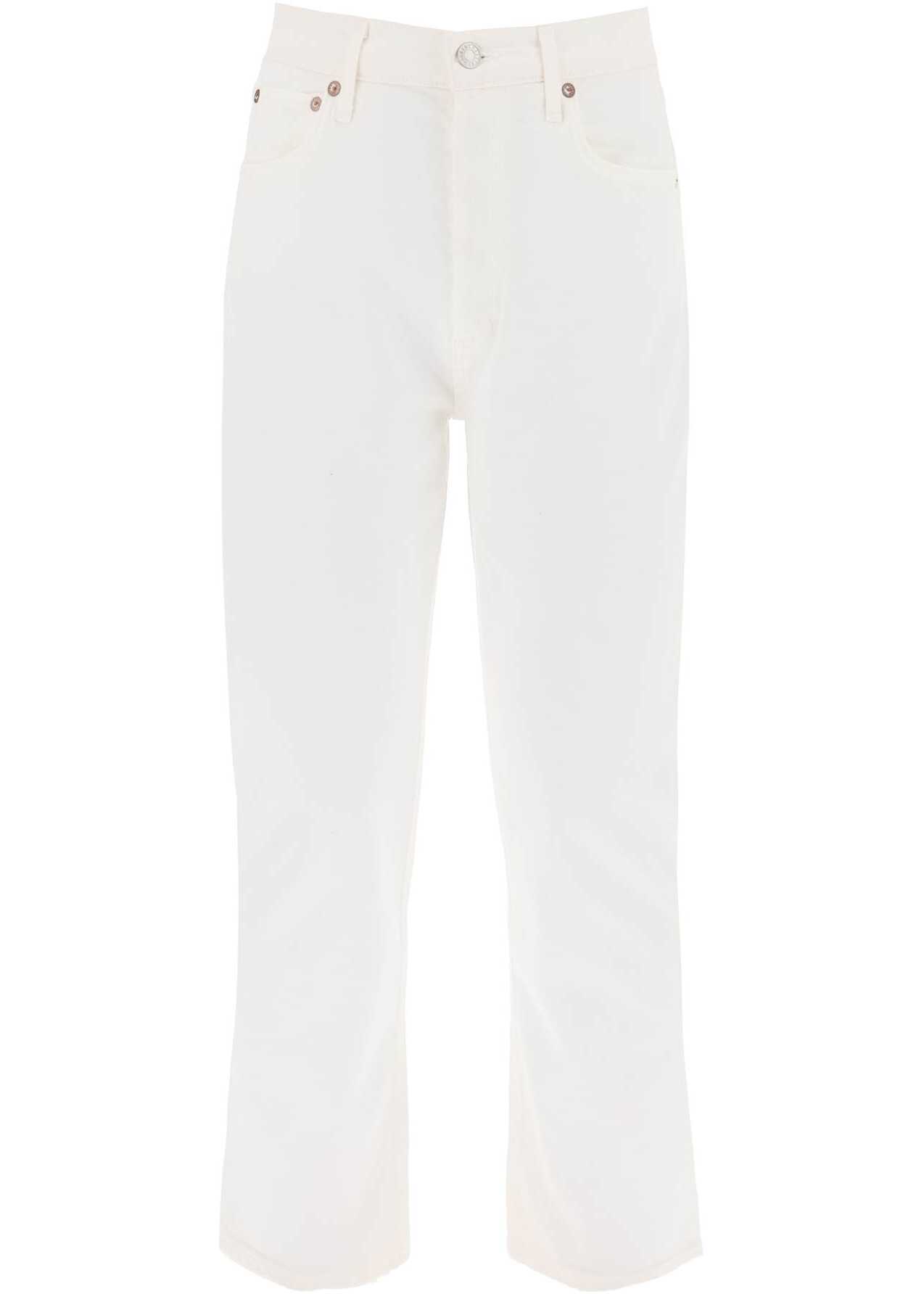 Agolde jeans crafted in stretch cotton denim, with five-pocket design characterized by distressed details on the hem. They feature belt loops and front fastening with button fly. Cropped tapered cut that sits high on the waist. The model is 177 cm tall and wears size 26.