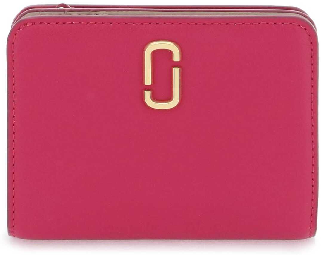 Marc Jacobs wallet crafted in smooth leather with gold metal monogram. Snap-button closure, bill compartment, six card slots, three slit pockets and zippered coin compartment.