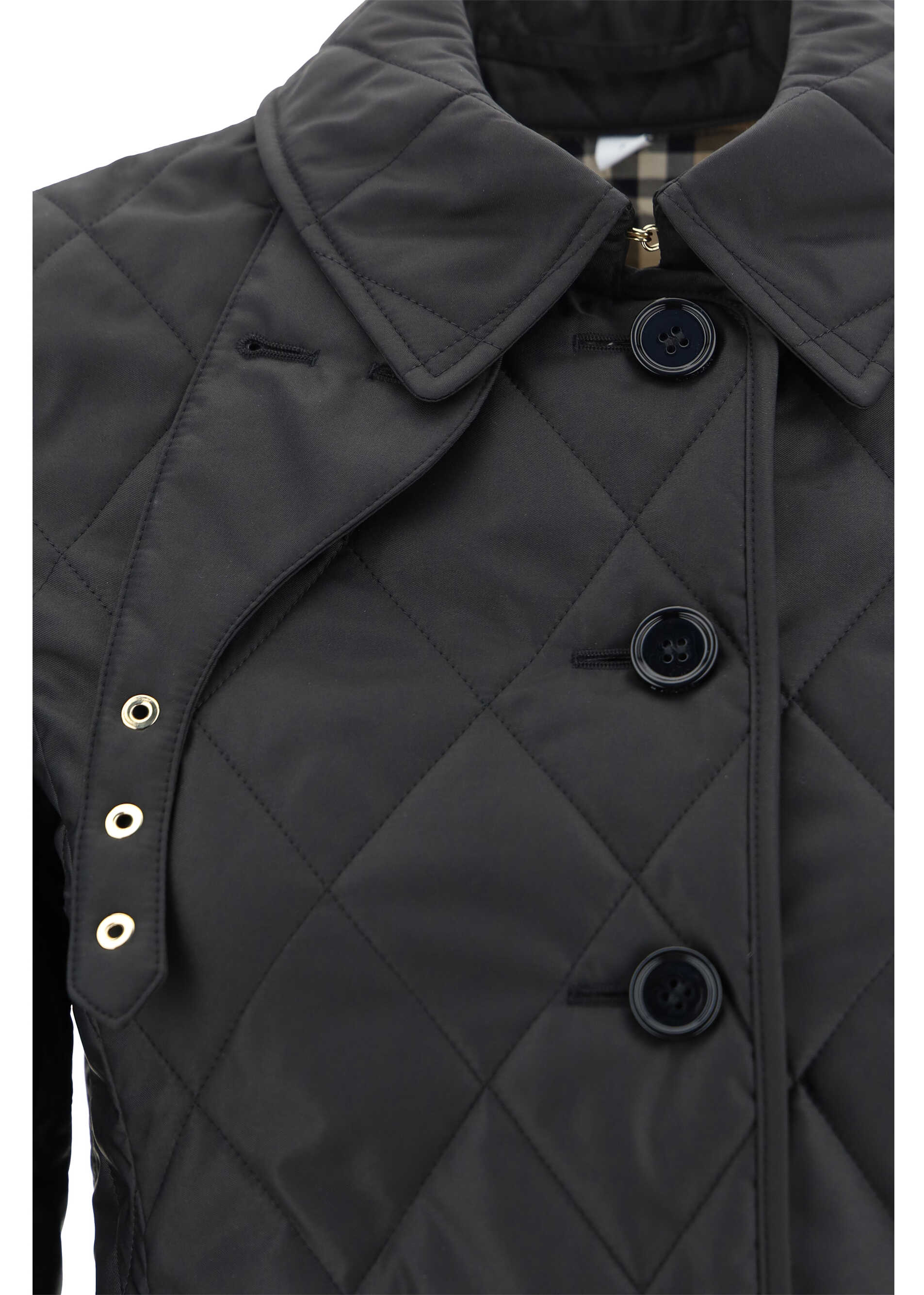Fernleigh Jacket by Burberry, quilted design, classic collar with hook-and-eye closure, two maxi patch pockets on front, tone-on-tone front button closure, adjustable button cuffs, lining with iconic all-over check pattern.