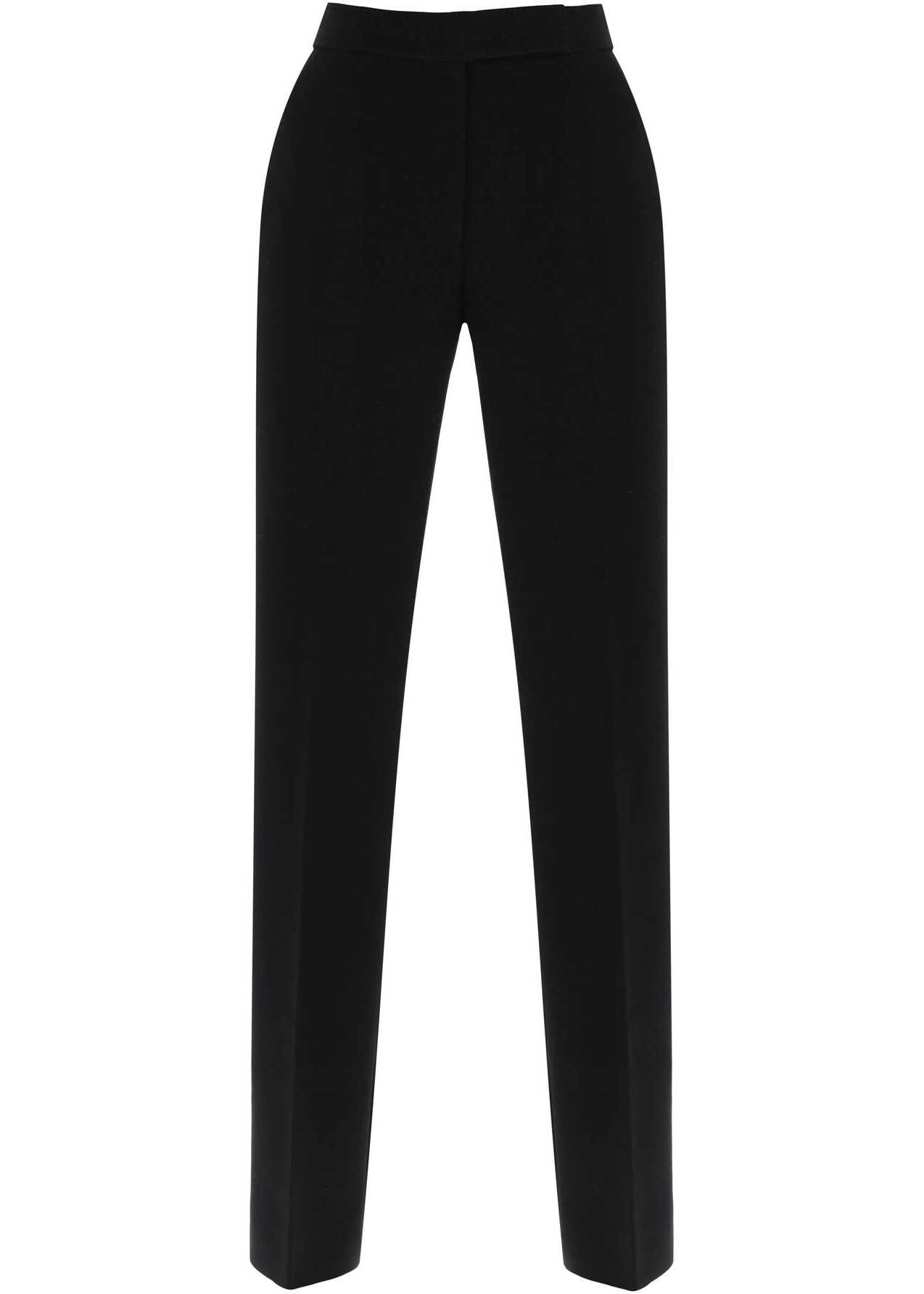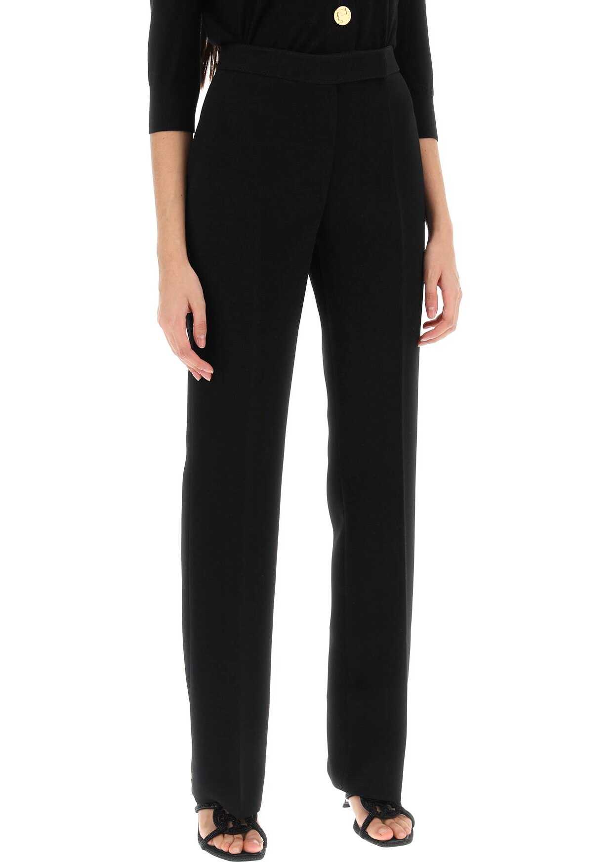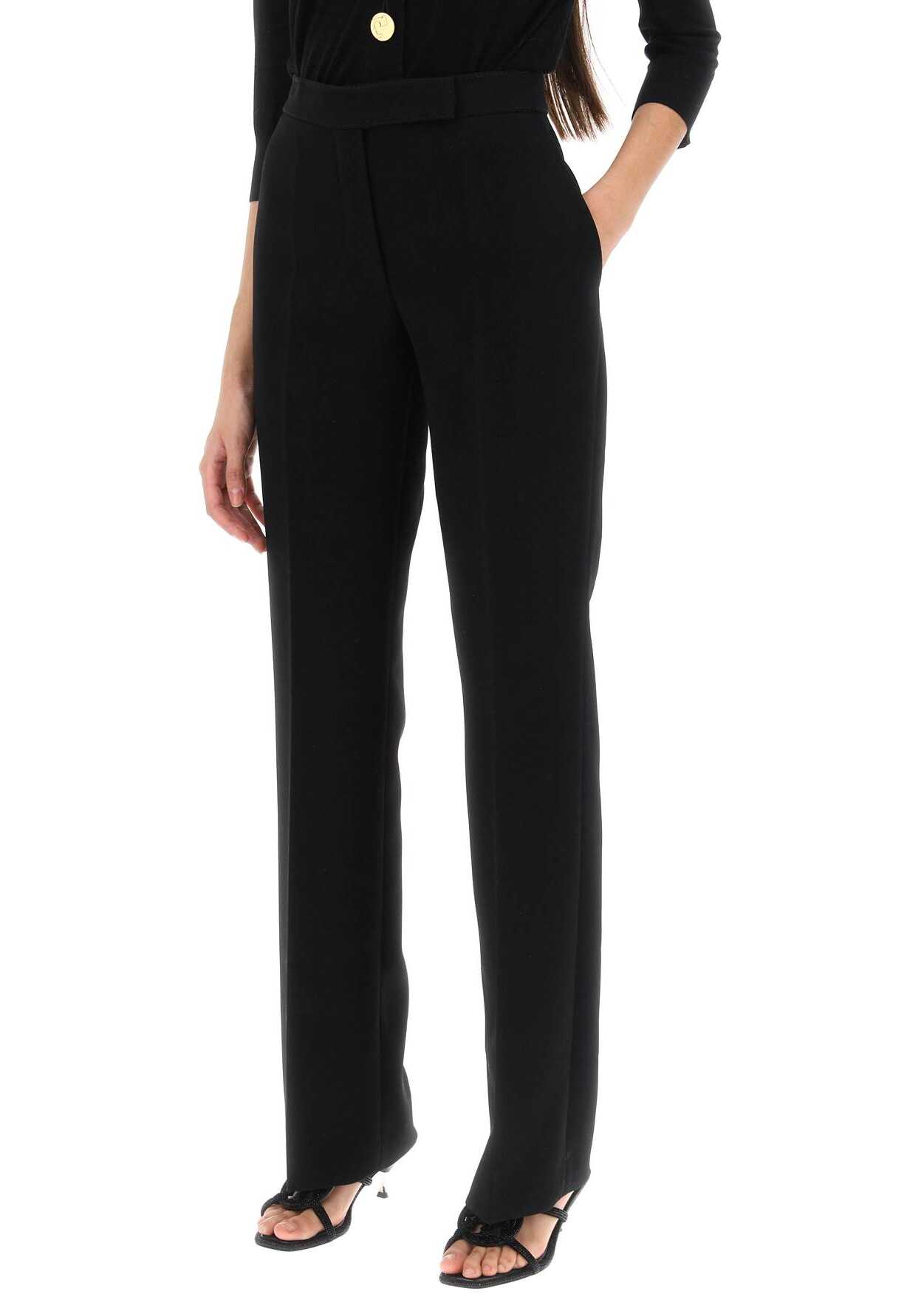 Tory Burch pants crafted in techno crepe cady with straight cut enhanced by pressed crease. They feature front fastening with zipper fly and extended wiastband with hook and button, side slash pockets and a welt pocket on the back. Finished with pick-stitching. The model is 177 cm tall and wears size US 4.