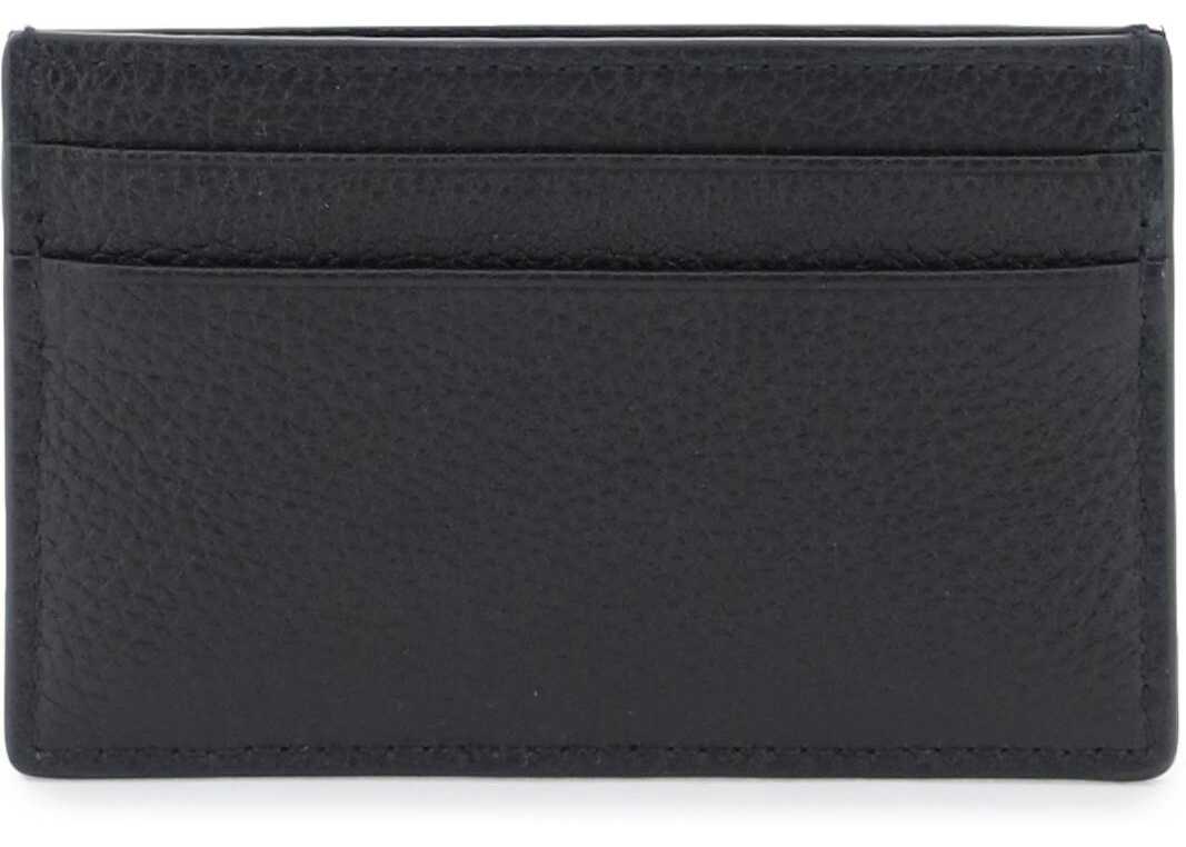 Alexander McQueen grained leather credit card holder with contrasting Graffiti lettering, two slots on each side and a center slit pocket.