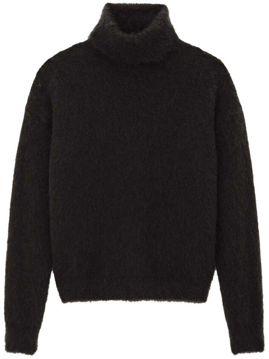Saint Laurent’s loose-fit pullover crafted in black mohair blend knit. Featuring high neck, long sleeves and straight hem.