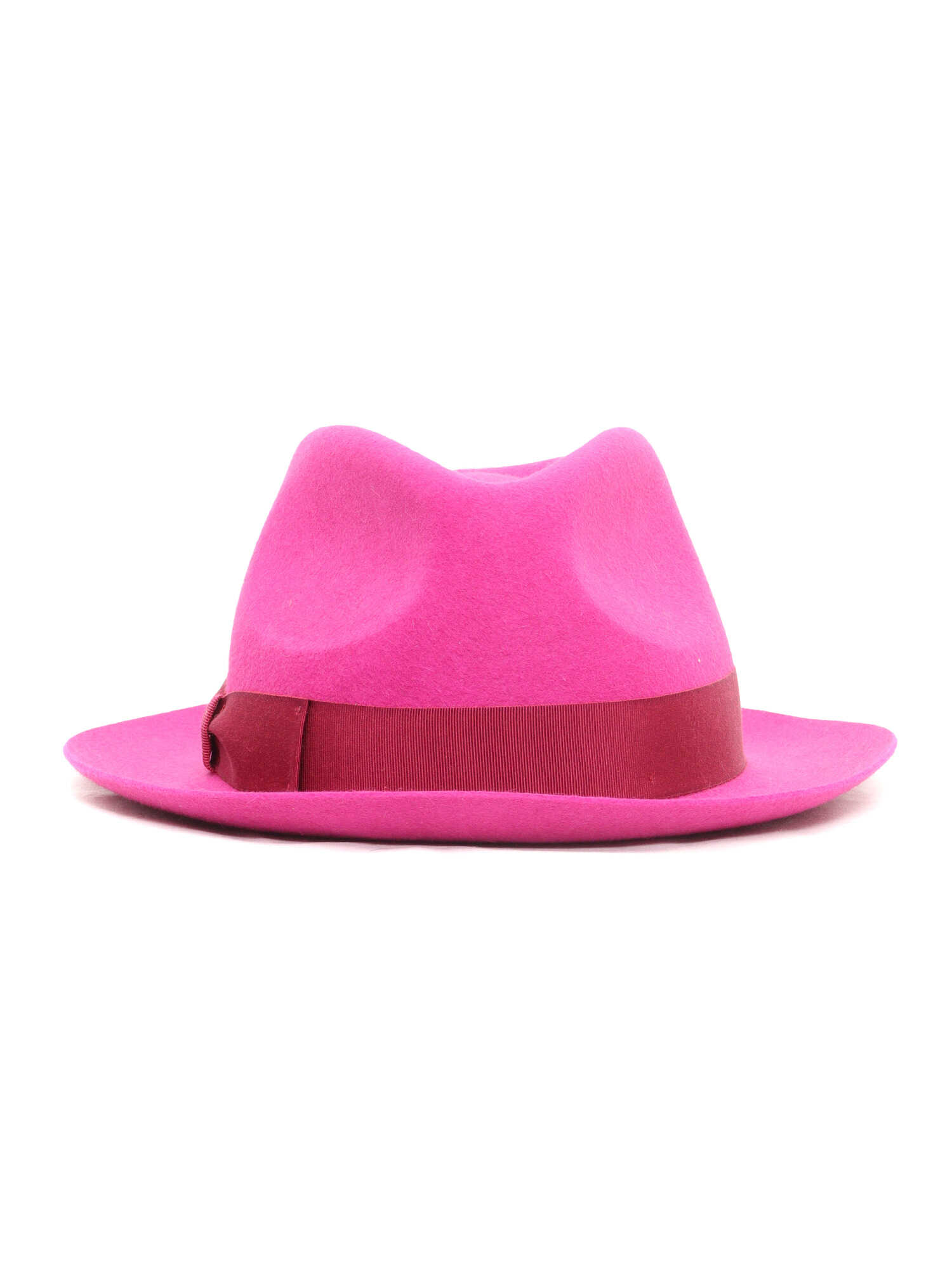 Fedora in rabbit fur, plain kint, small brim with reed band