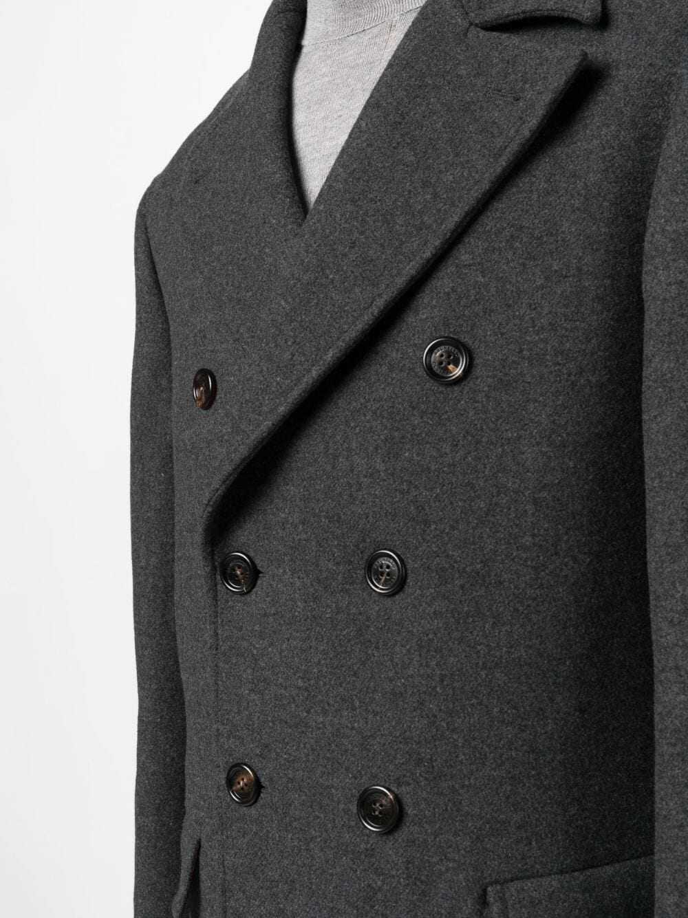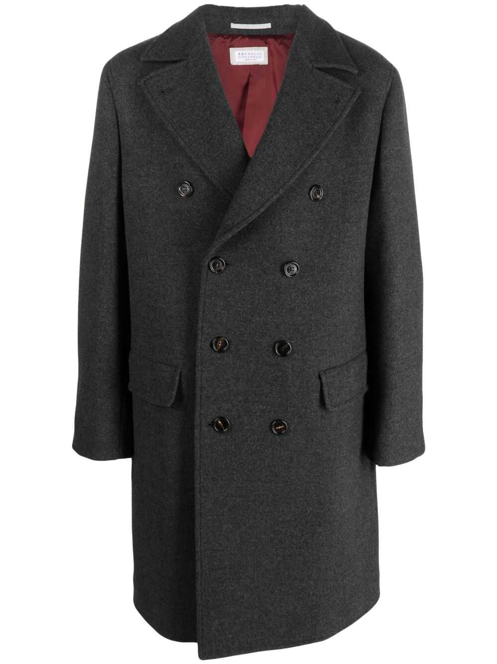 Stay stylish and warm with this elegant Gray Brunello Cucinelli coat. Made with 95% wool and 5% cashmere, it offers both comfort and luxury. Perfect for any occasion, this coat is a must-have for every fashionable man. Upgrade your wardrobe today!