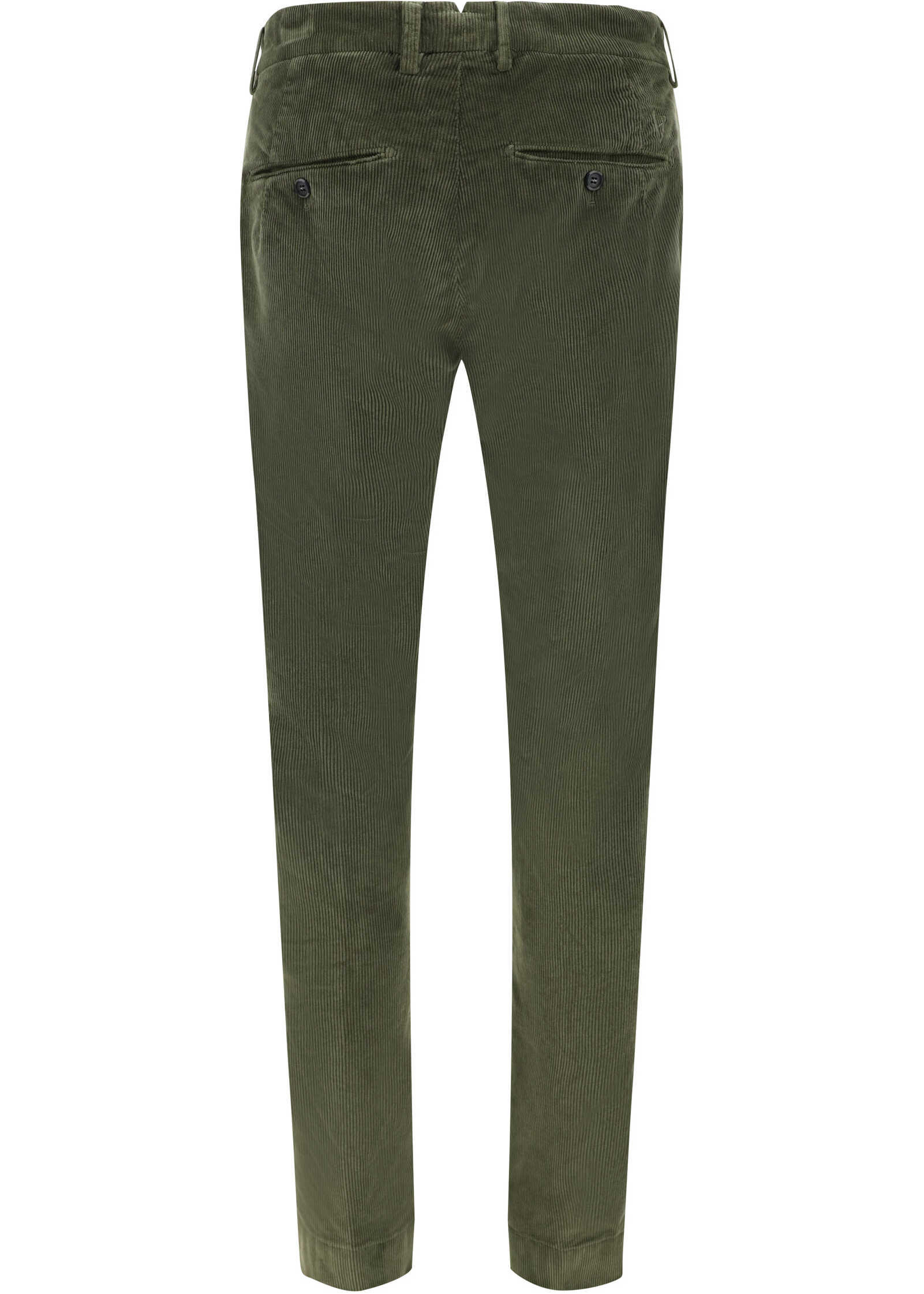 Cotton Pants by Hand Picked, front button and zipper closure, straight pattern, two side slash pockets, two welt pockets with button on back, corduroy design, belt loops waistband.