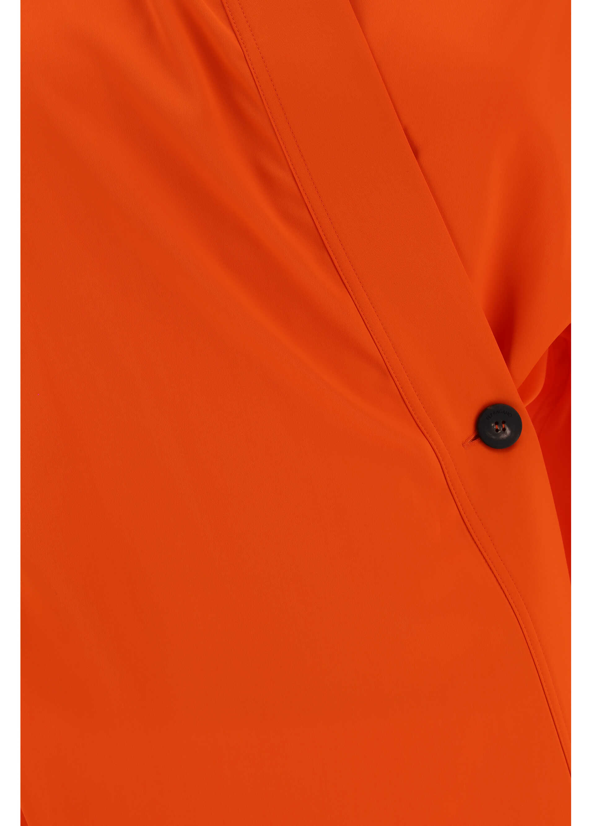 Shirt by Ferragamo, classic collar, adjustable button cuffs, monochrome design, Kimono closure pattern via single button on side panel, oversize fit.