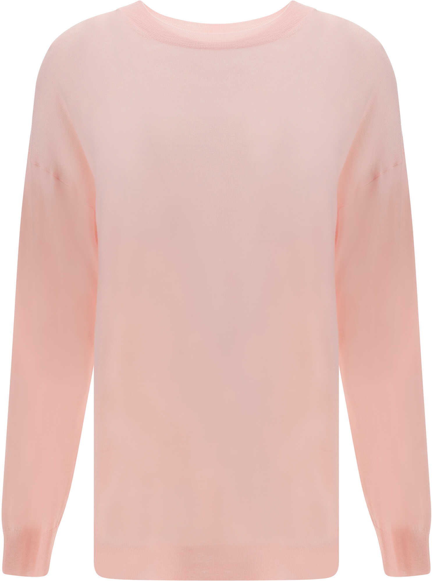 Wool Linfa Sweater by P.A.R.O.S.H., features ribbed crew neck, ribbed hem, ribbed cuffs, monochrome design, regular fit.