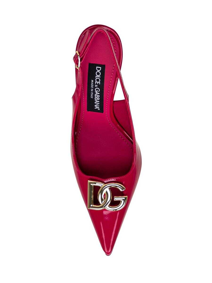 Pointed slingback pumps. Stiletto heel. Ankle strap. Logo on toe. Heel height: 9