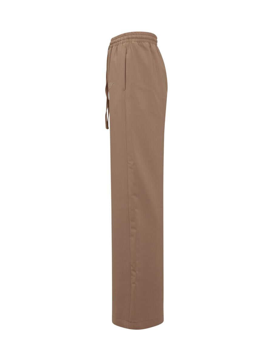 Long pants. Wide leg. Elastic and drawstring waistband. Embroidered logo on front. Side pockets.