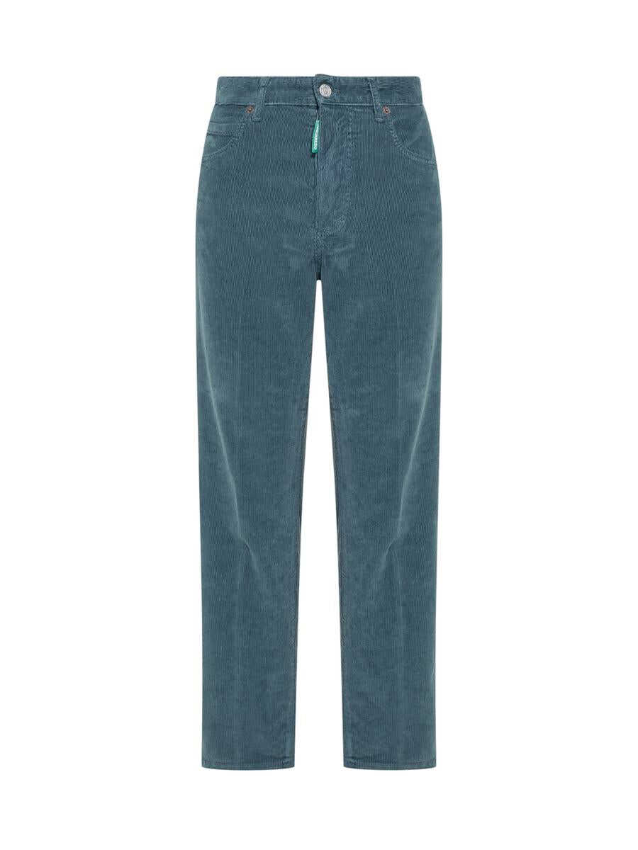 Blue long pants. Button closure. Belt loops. Side and back pockets.