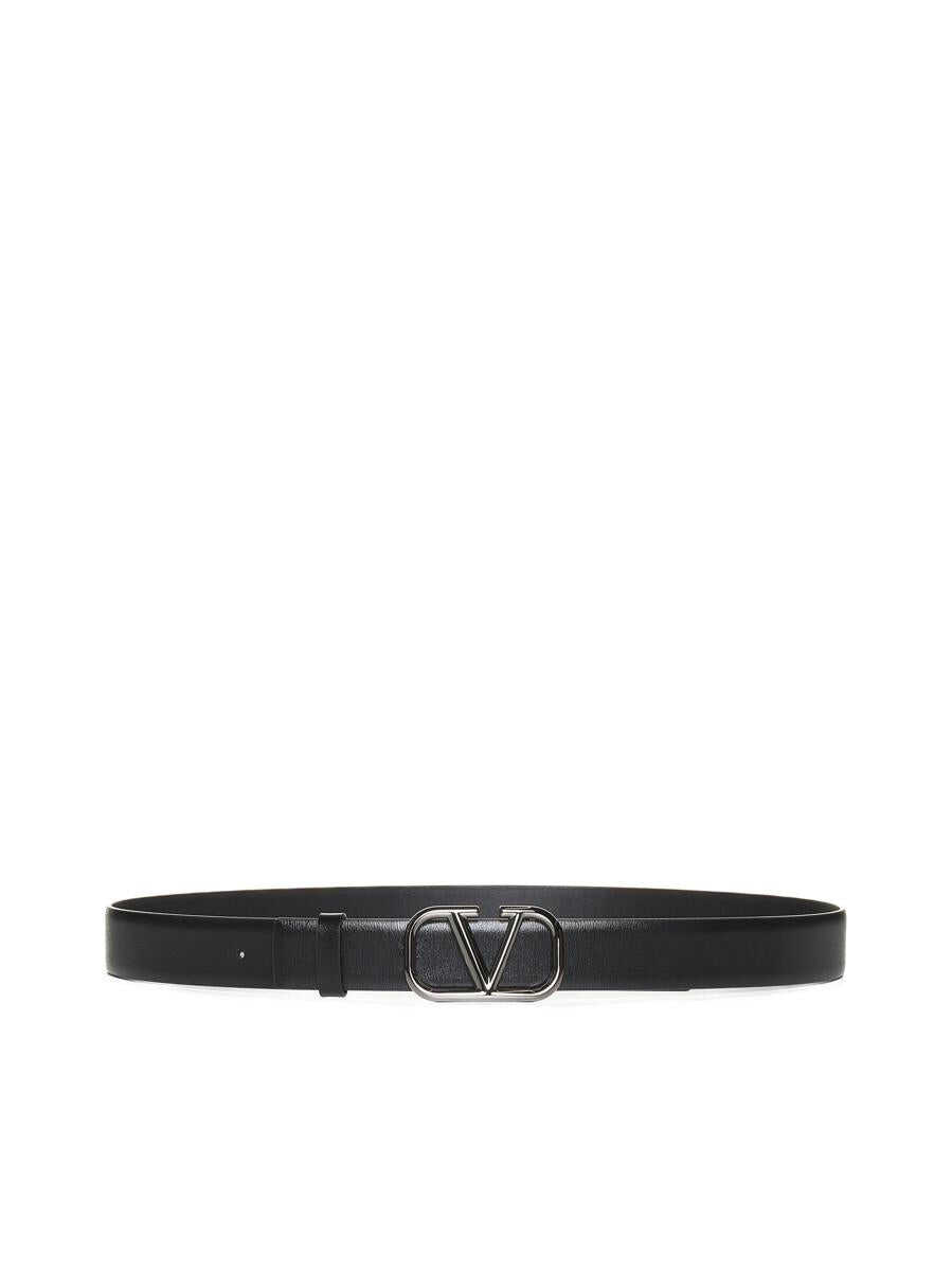 Valentino Garavani’s black leather belt featuring VLogo Signature buckle in silver-tone metal.