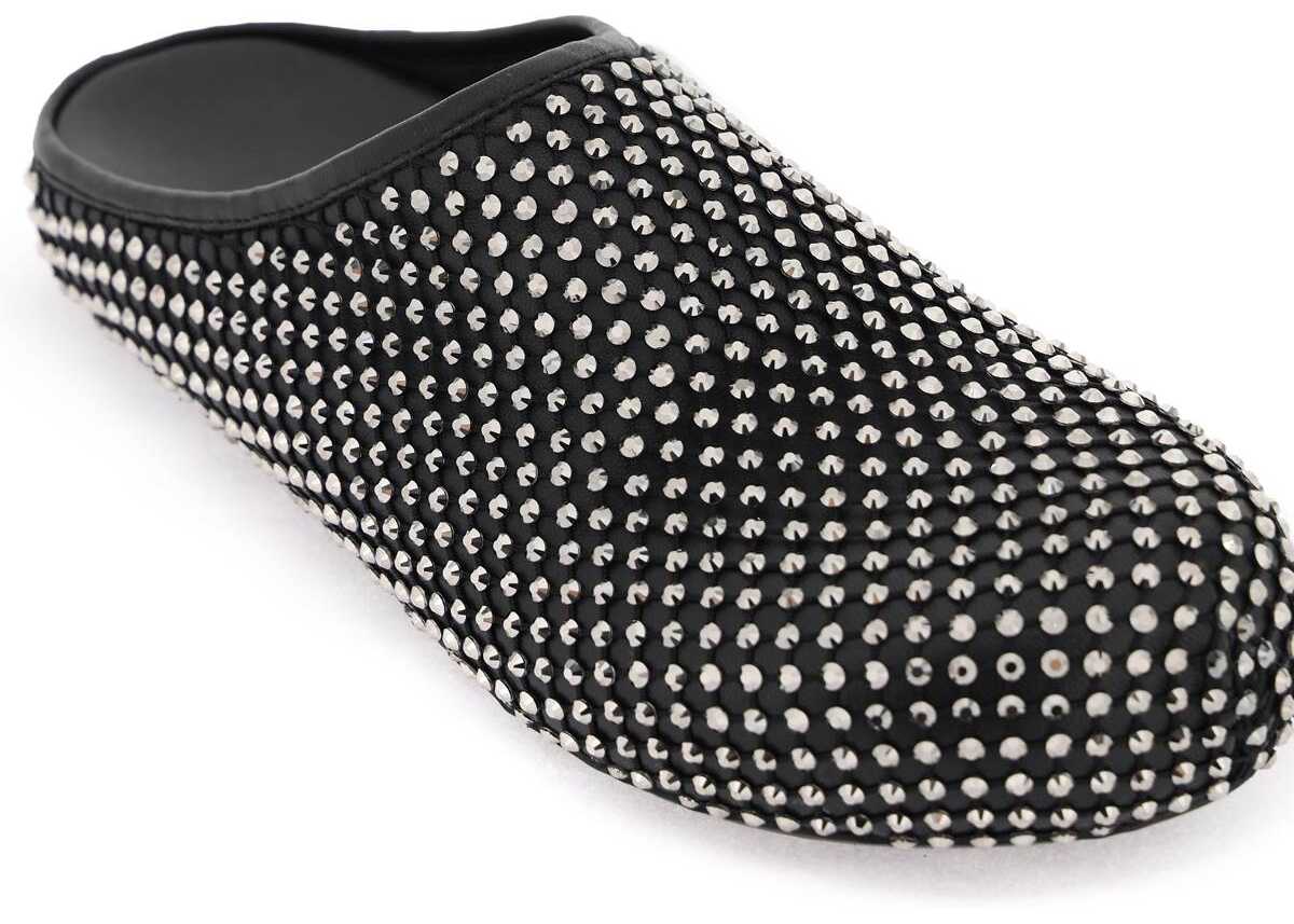 Fussbett clogs by Marni covered entirely in rhinestone mesh featuring leather interior, anatomical insole and rubber sole.