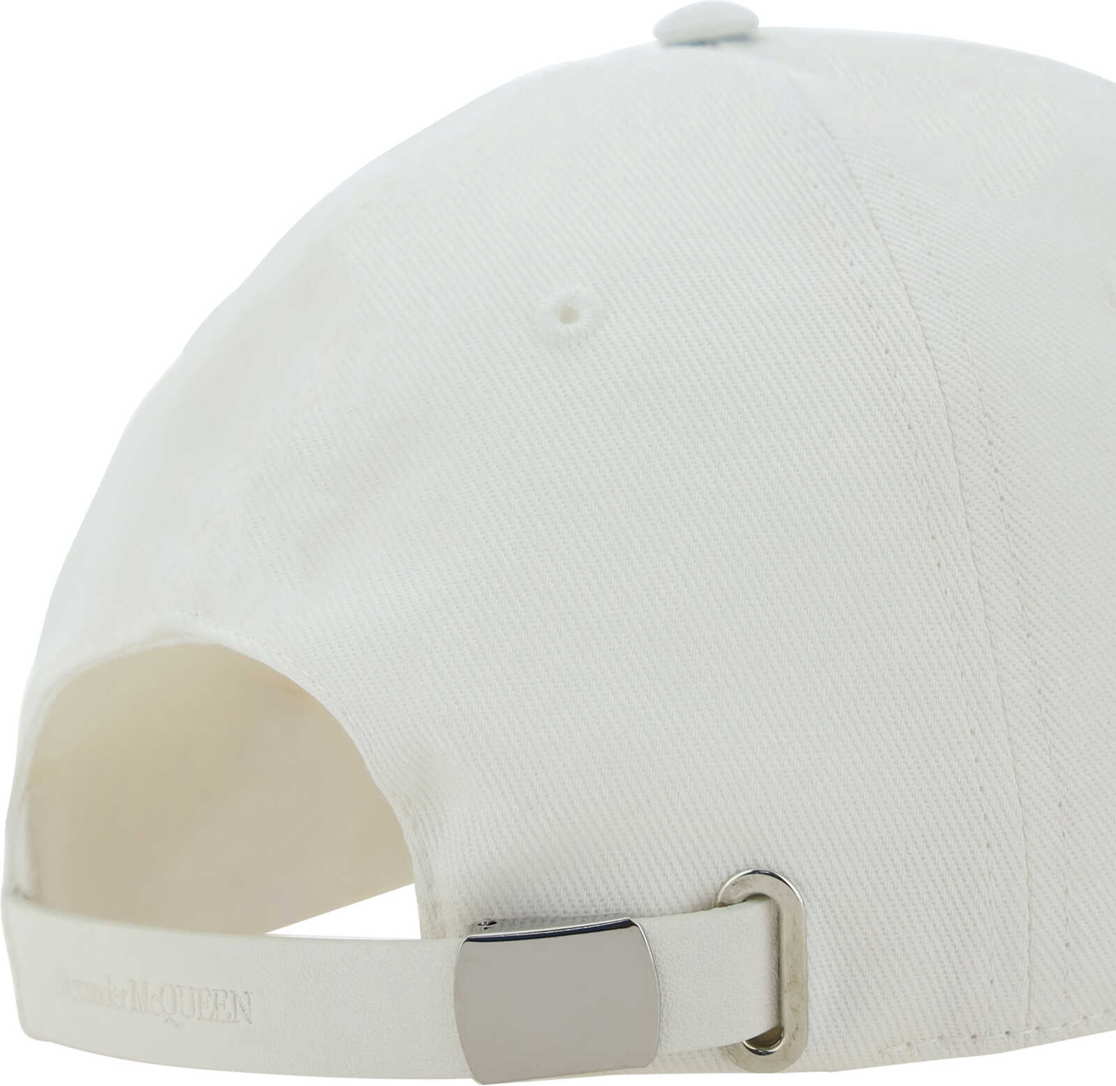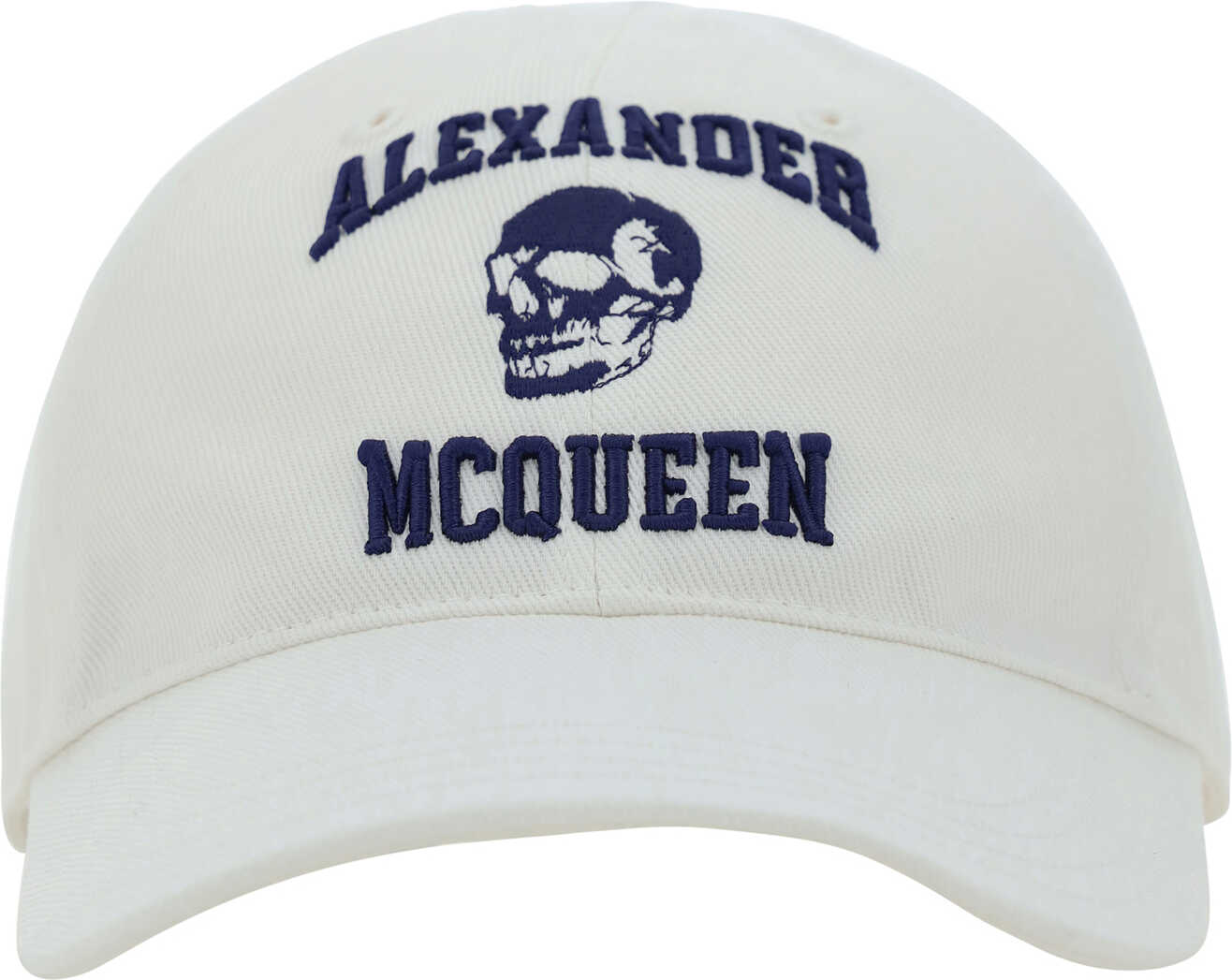Cotton Varsity Baseball Hat by Alexander McQueen, adjustable back closure, iconic brand monogram printed in contrast on front.