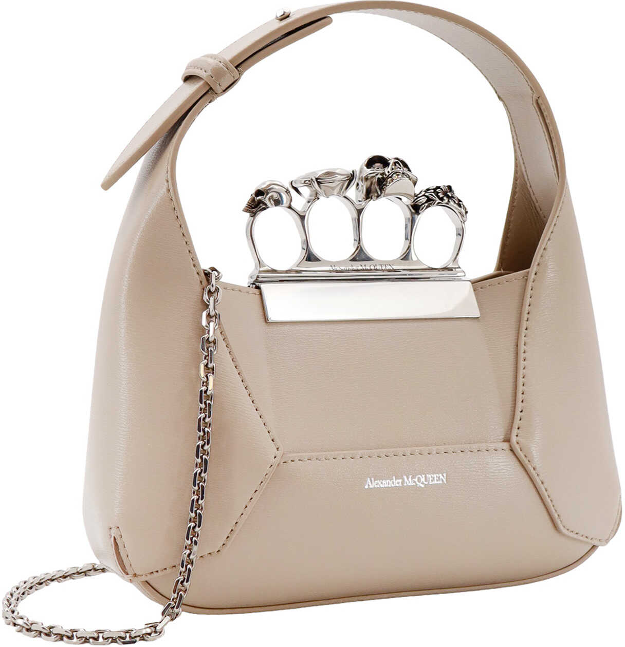 Leather handbag with Swarovski crystals rings