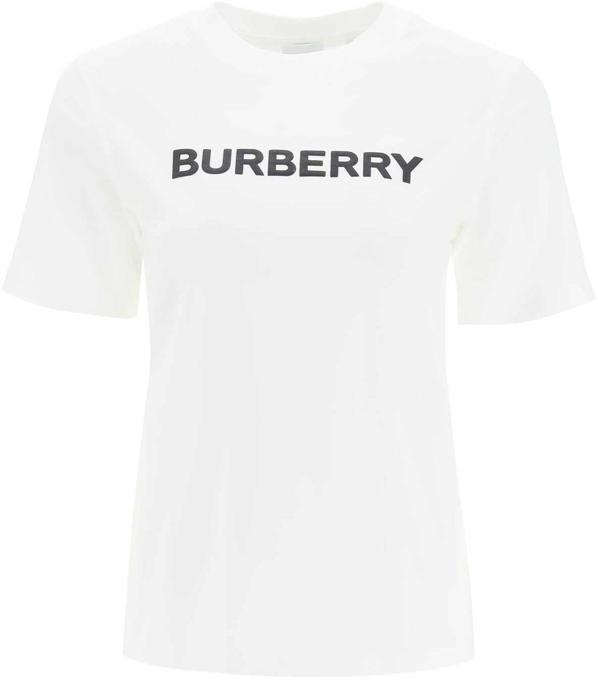 Burberry short-sleeve T-shirt in cotton jersey, with contrasting logo print at front. Ribbed crew-neck and regular fit. The model is 177 cm tall and wears a size XS.