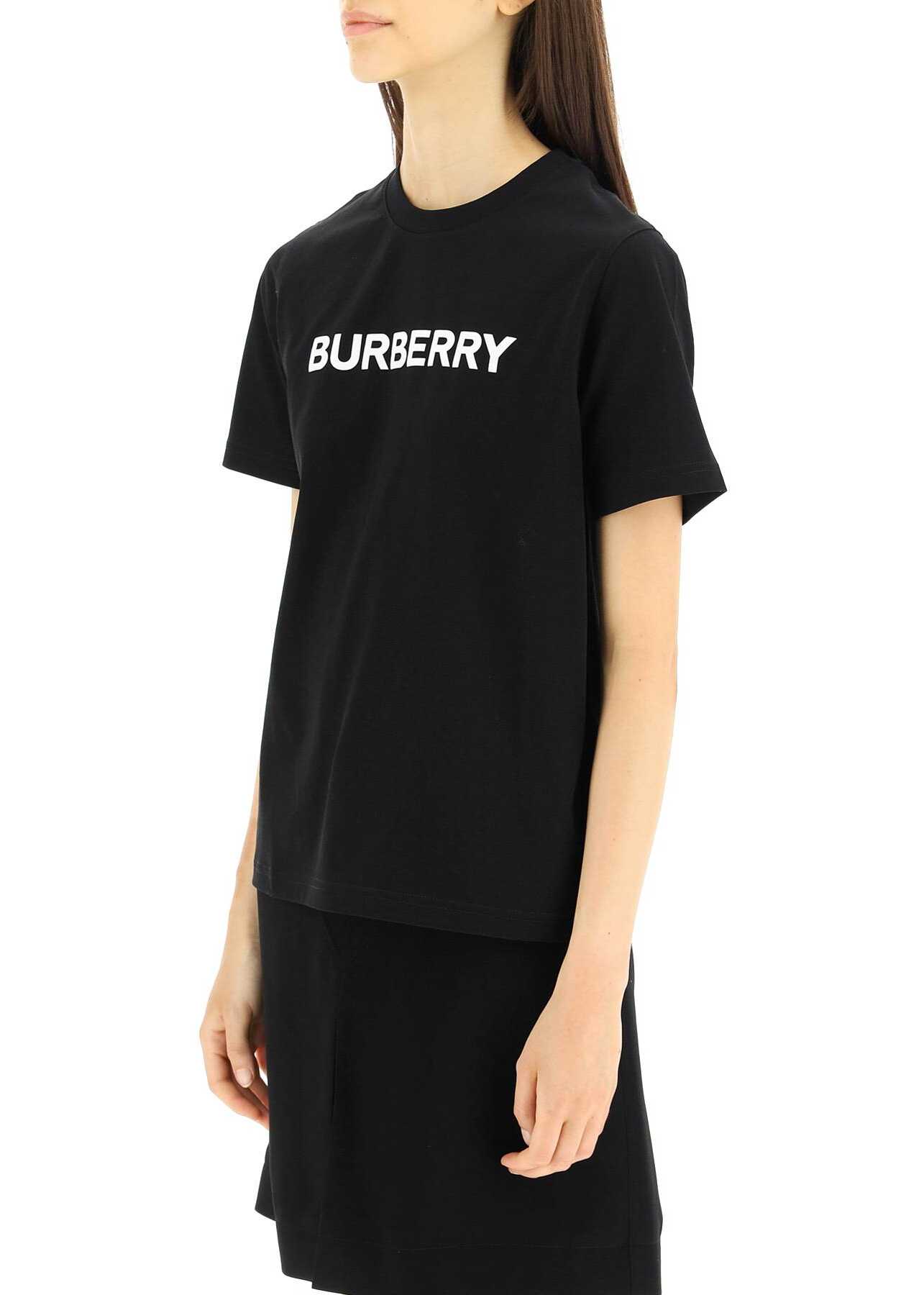 Burberry T-shirt in organic cotton jersey with contrasting logo print on the chest. Micro-ribbed stretch crew neck, regular fit. The model is 177 cm tall and wears a size XS.