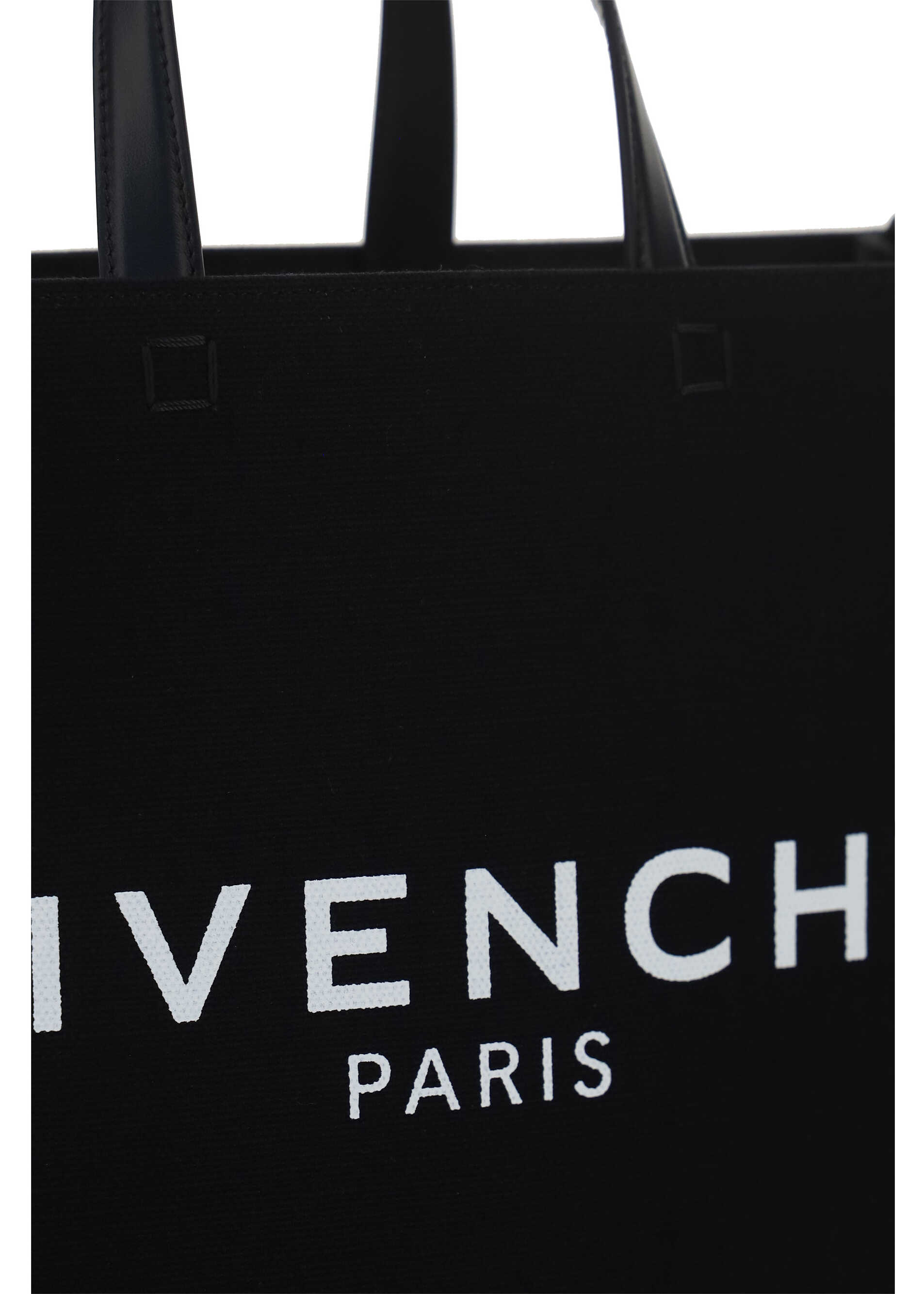 Cotton G-Tote Handbag by Givenchy, contrasting print on the front with the brand's monogram, removable canvas jacquard shoulder strap, two semi-rigid leather handles, support feet on the base of the bag with the iconic 4G motif, internal welt pocket, metal details with silver hardware.