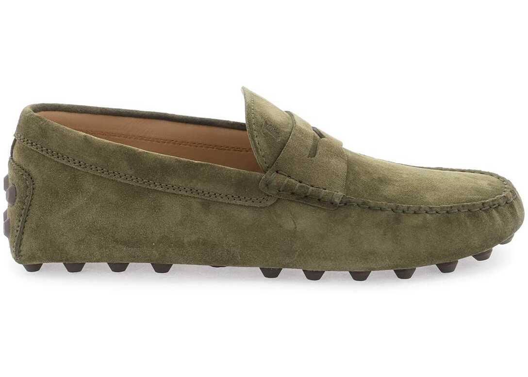 Tod's loafers in suede leather featuring logo detail on tongue. Leather lining, rubber pebble sole.