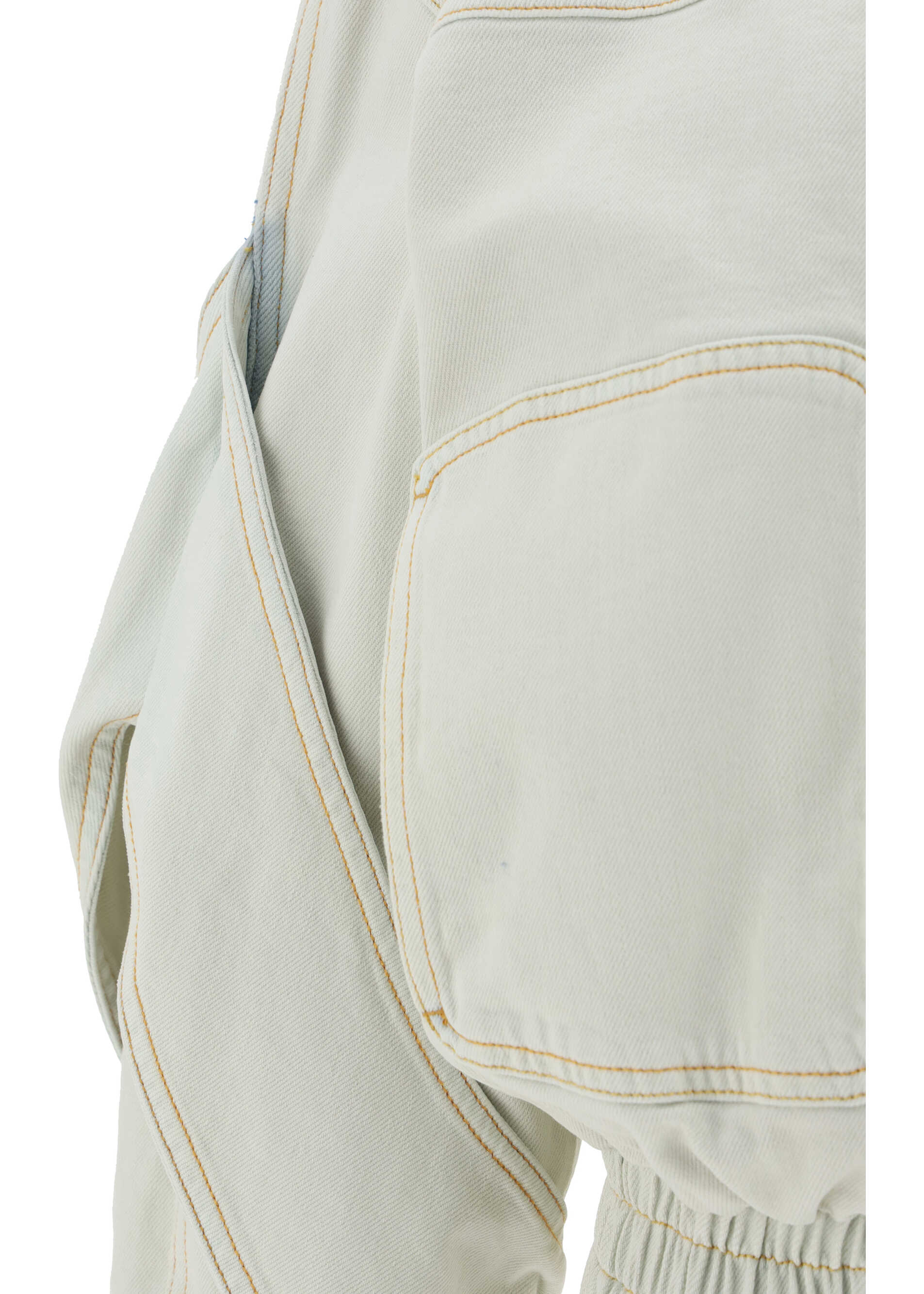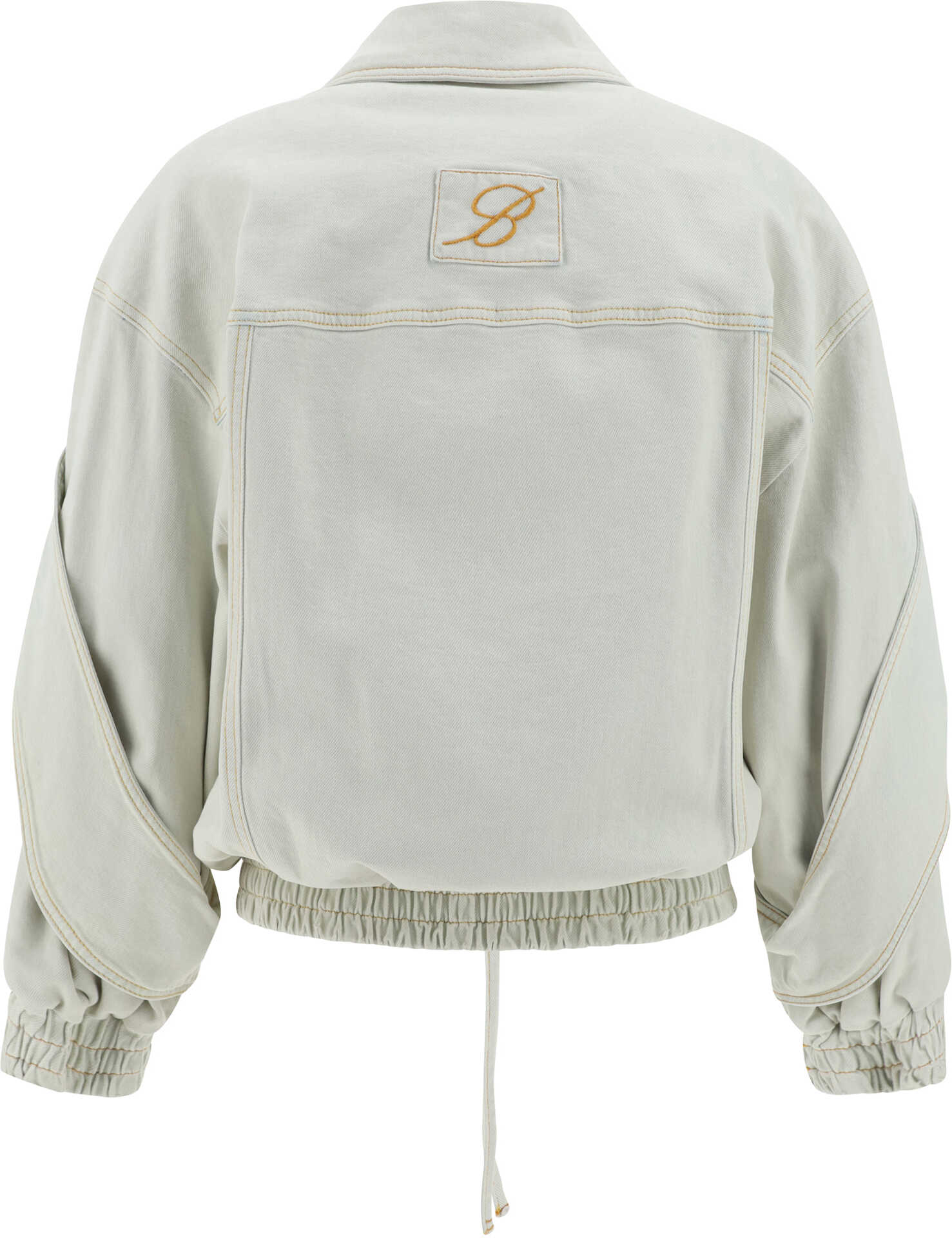 The Blumarine cotton bomber Jacket is a modern and versatile piece, perfect for a casual and sophisticated look. Crafted from quilted denim, it features a double-slider zip front closure for practicality and comfort. The classic collar, elasticated cuffs and hem ensure a perfect fit. A zipped welt pocket on the front and two side welt patch pockets add functionality to the design. The sleeve detail completes the look, making this bomber jacket a must-have for an urban and dynamic wardrobe.