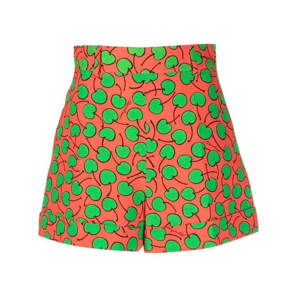 Orange/green cotton blend high-waisted two diagonal pockets to the sides fitted waistline