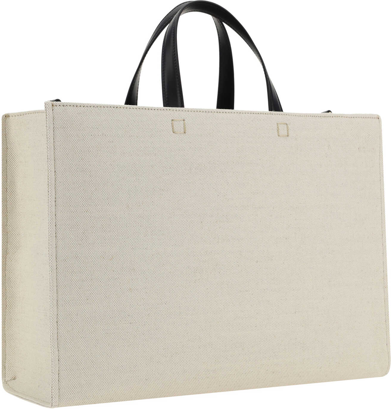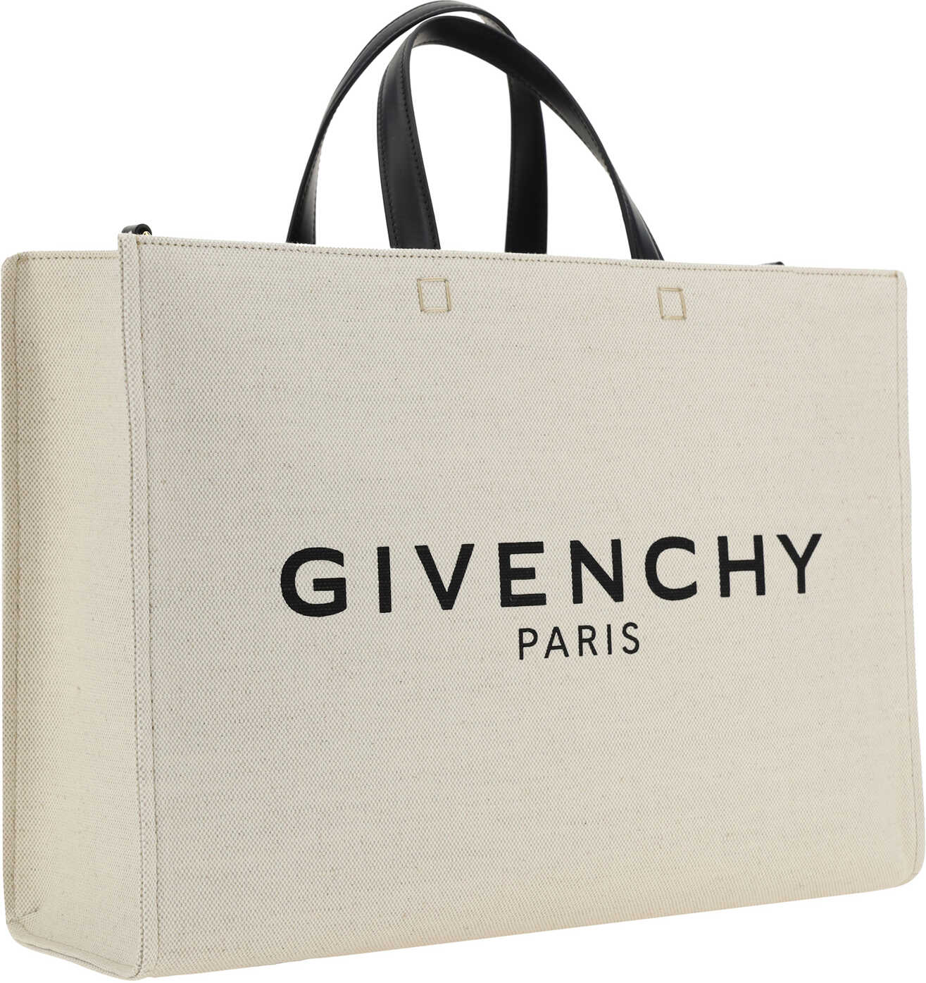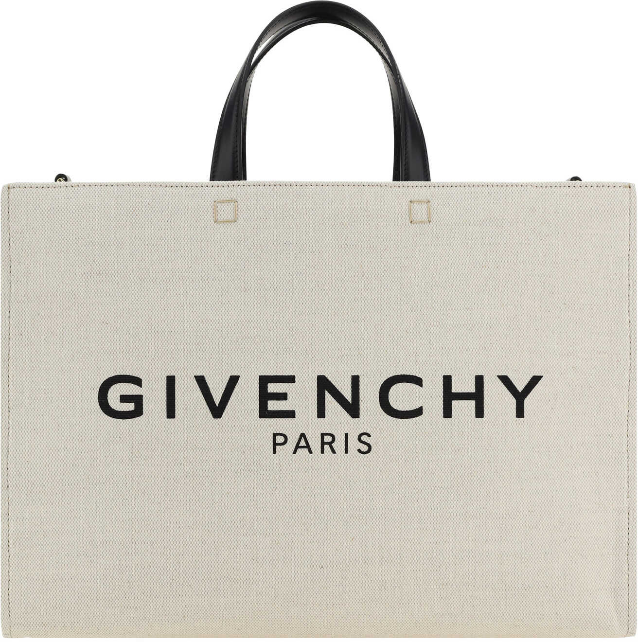 Cotton G-Tote Handbag by Givenchy, featuring geometric design, double stiff leather top handle, adjustable and removable webing shoulder strap, iconic brand monogram printed in contrast on front.